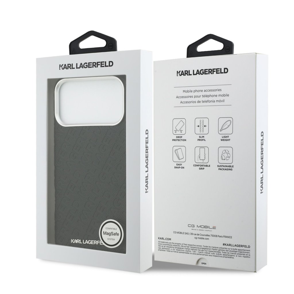 Karl Lagerfeld Grained PU Repeated Logo MagSafe Zadní Kryt pro iPhone 17 Pro Max Black