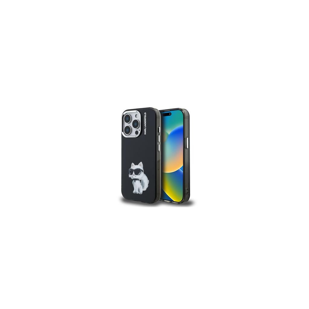 Karl Lagerfeld IML Aquarelle Choupette Zadní Kryt pro iPhone 15 Pro Black