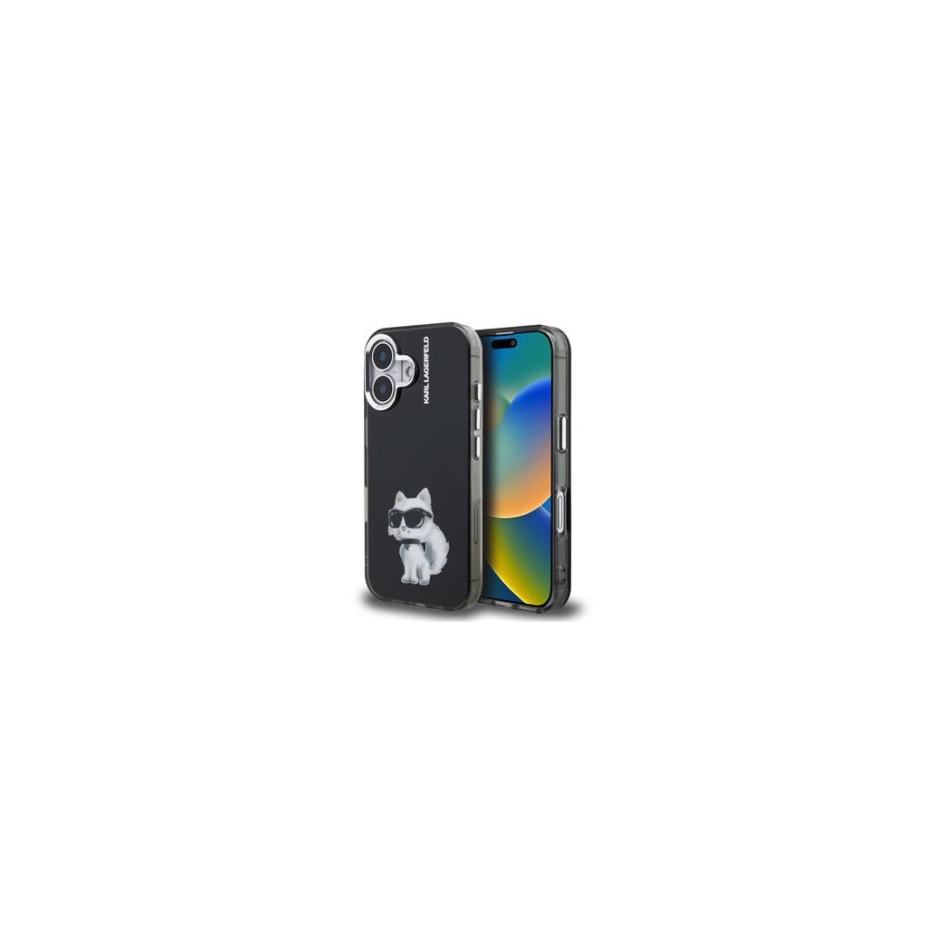 Karl Lagerfeld IML Aquarelle Choupette Zadní Kryt pro iPhone 16 Black
