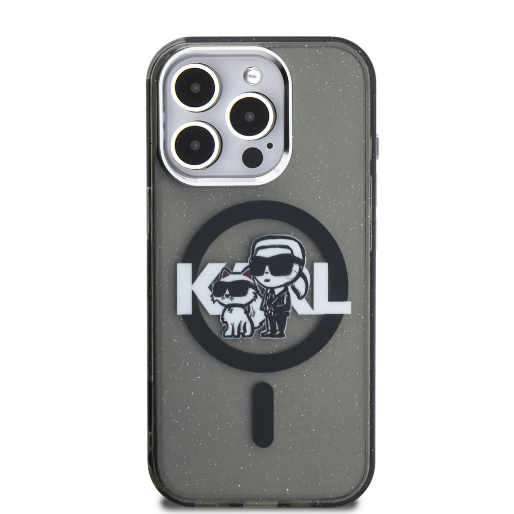 Karl Lagerfeld IML Glitter Karl and Choupette Sketch MagSafe Zadní Kryt pro iPhone 15 Pro Black
