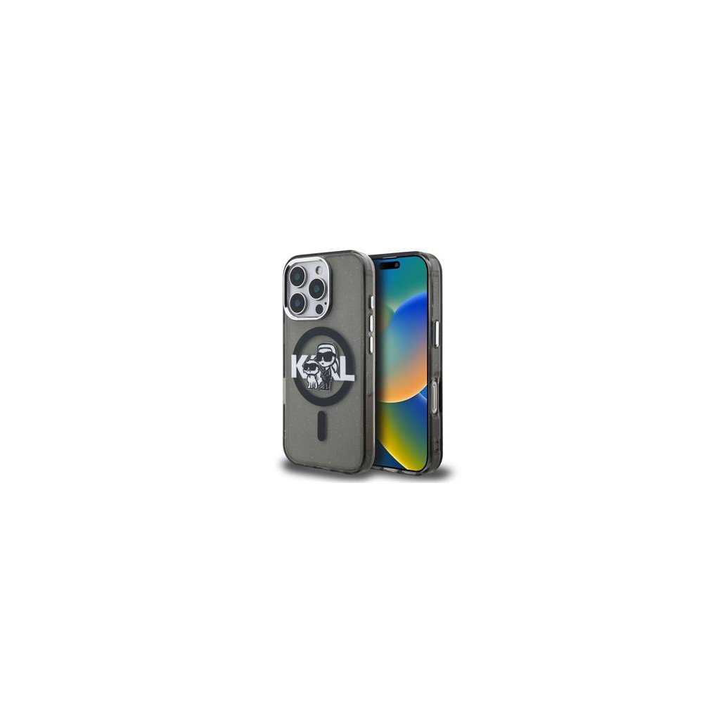 Karl Lagerfeld IML Glitter Karl and Choupette Sketch MagSafe Zadní Kryt pro iPhone 16 Pro Max Black