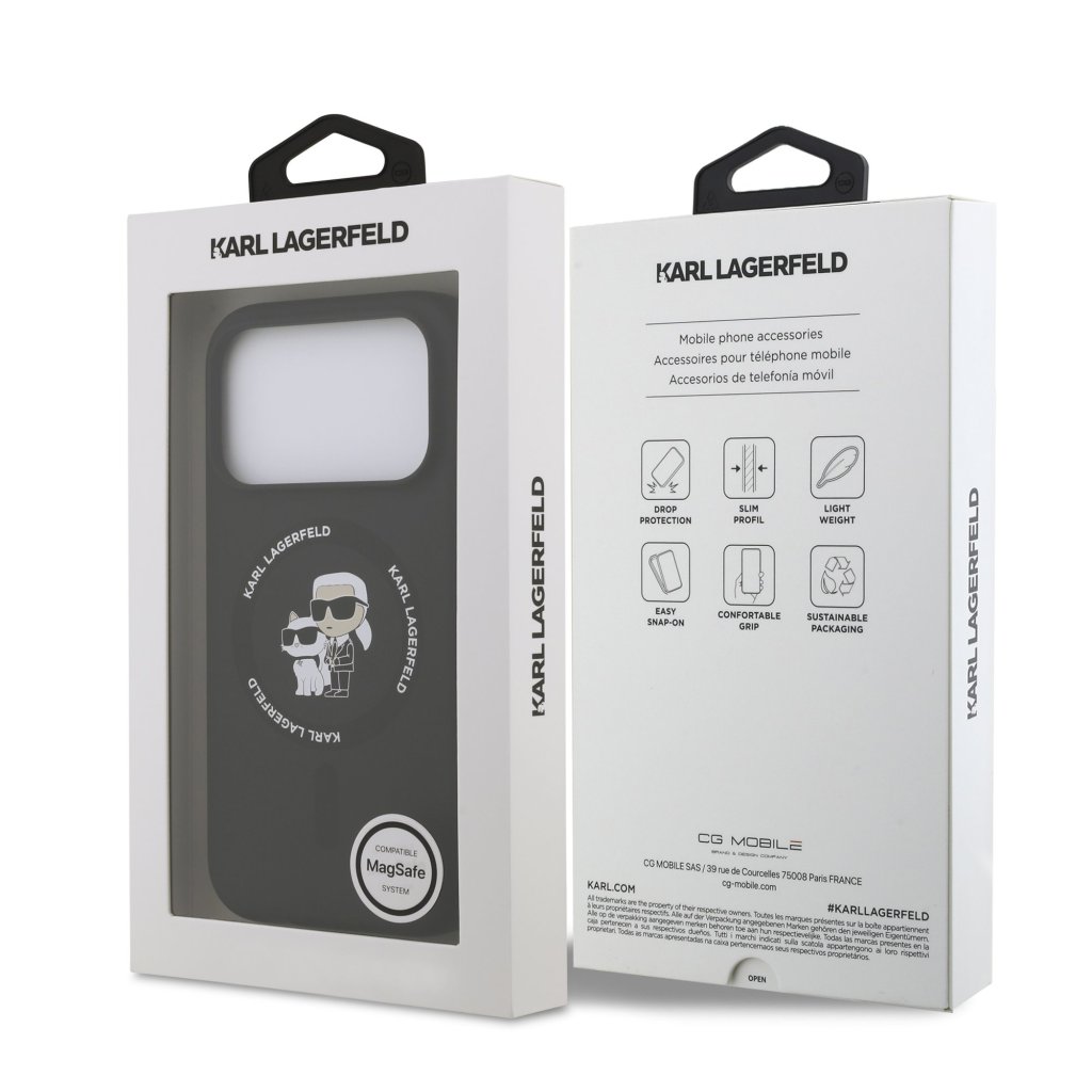 Karl Lagerfeld Liquid Silicone Karl and Choupette MagSafe Zadní Kryt pro iPhone 17 Pro Max Black