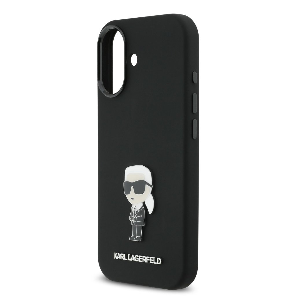 Karl Lagerfeld Liquid Silicone Metal Ikonik Zadní Kryt pro iPhone 17 Black