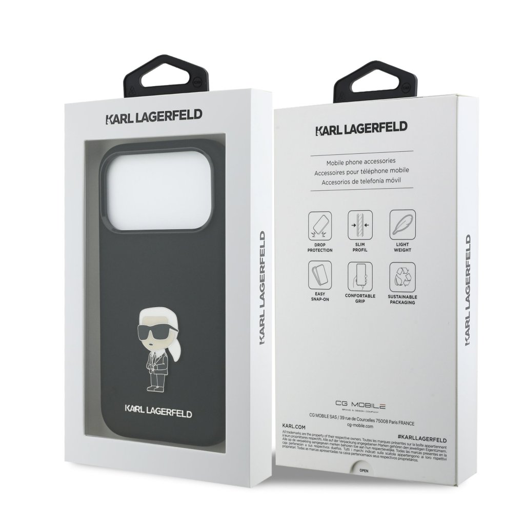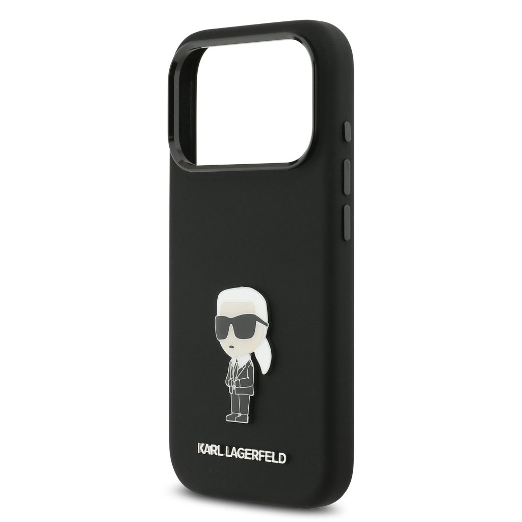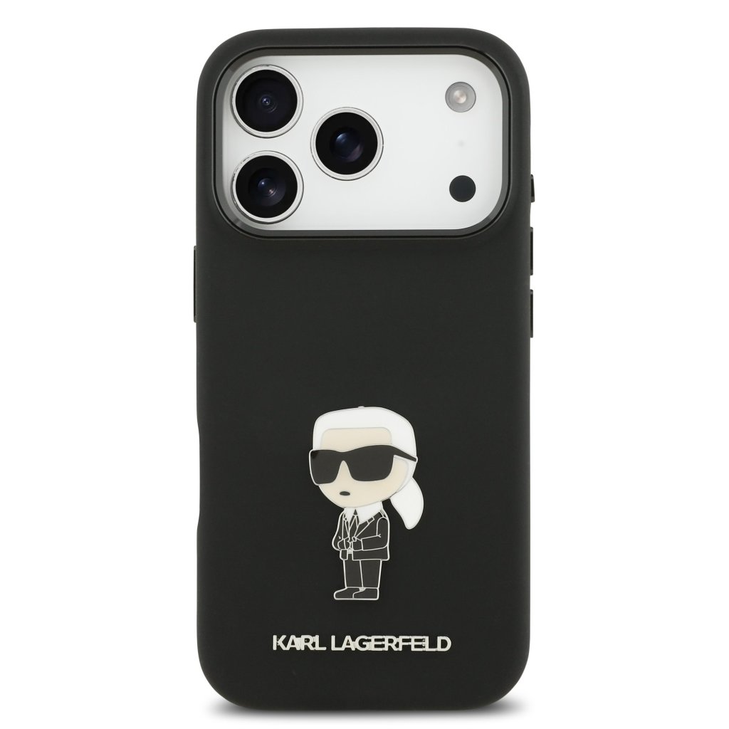 Karl Lagerfeld Liquid Silicone Metal Ikonik Zadní Kryt pro iPhone 17 Pro Black