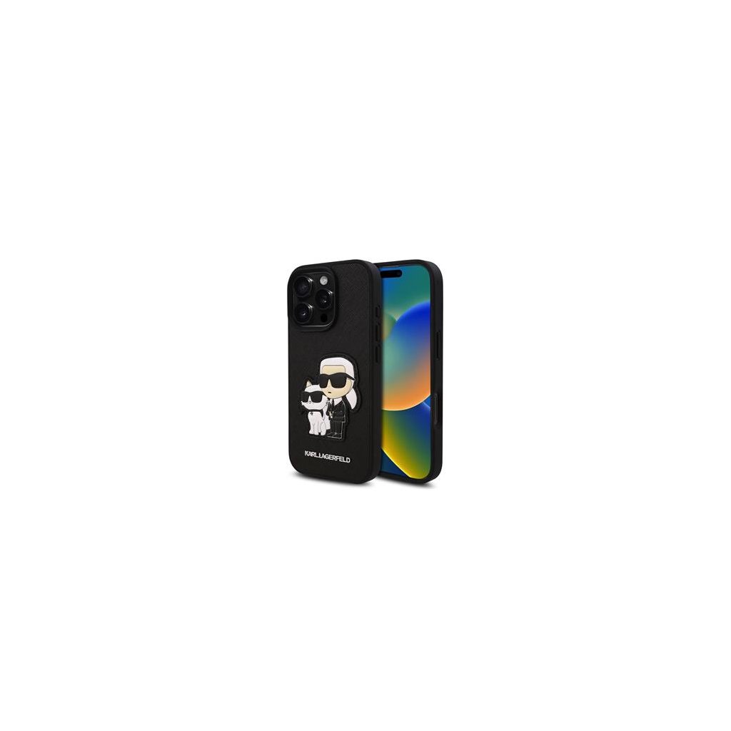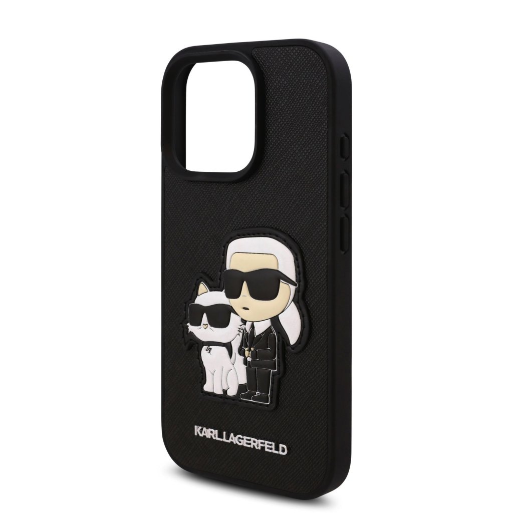 Karl Lagerfeld PU Saffiano Karl and Choupette Zadní Kryt pro iPhone 16 Pro Black