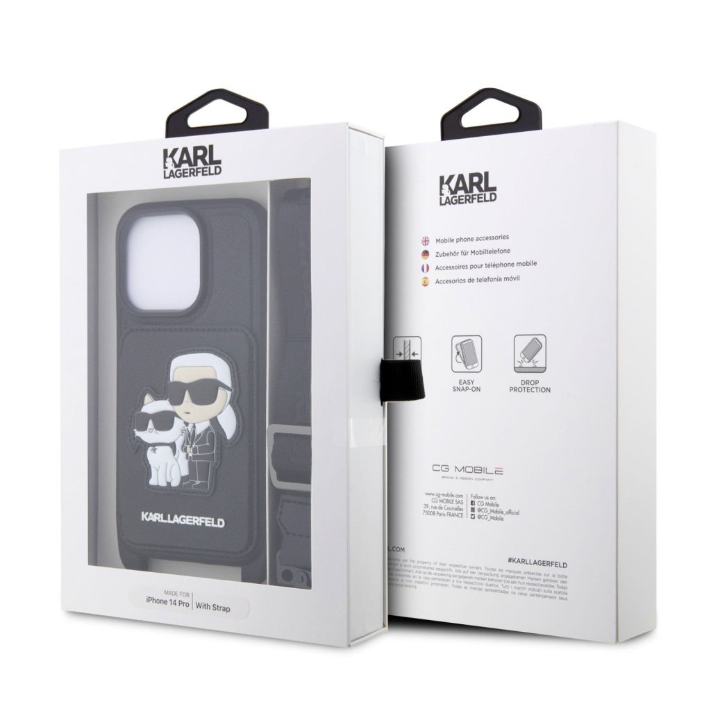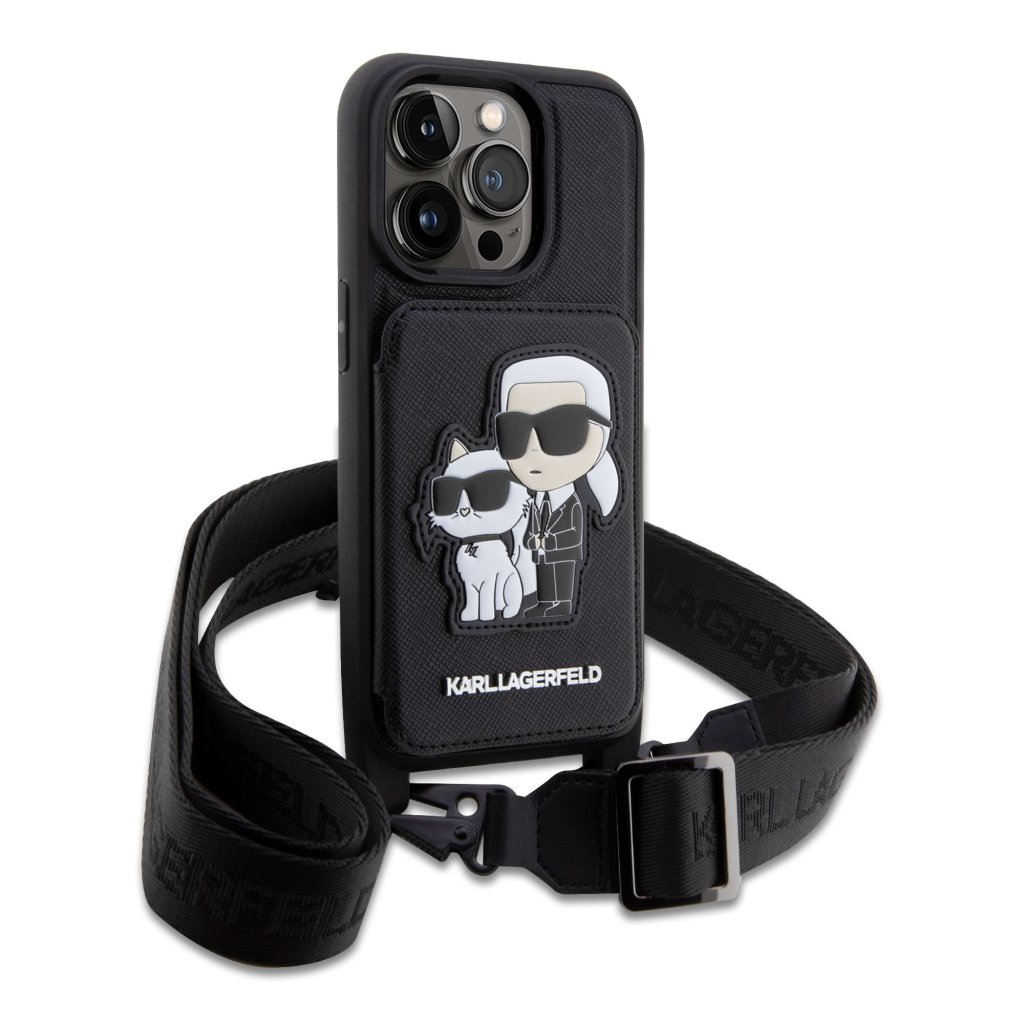 Karl Lagerfeld Saffiano Crossbody Popruh Karl and Choupette Kryt pro iPhone 14 Pro Black