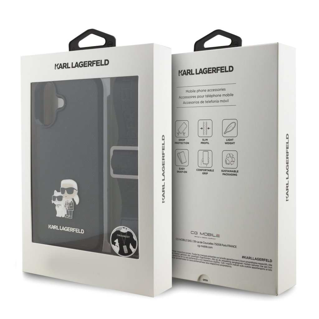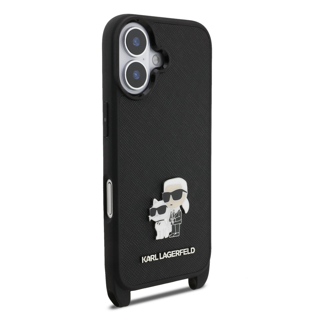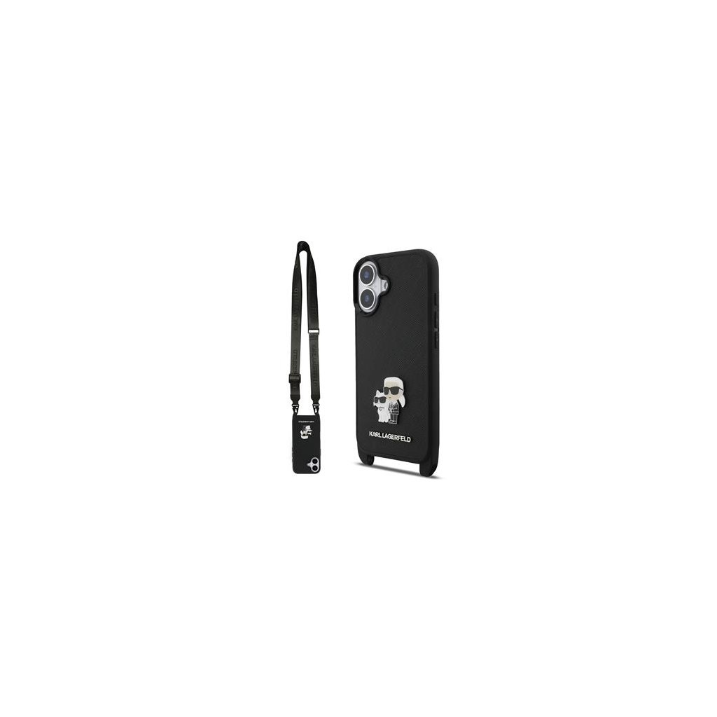 Karl Lagerfeld Saffiano Crossbody Popruh Metal Karl and Choupette Zadní Kryt pro iPhone 17 Black