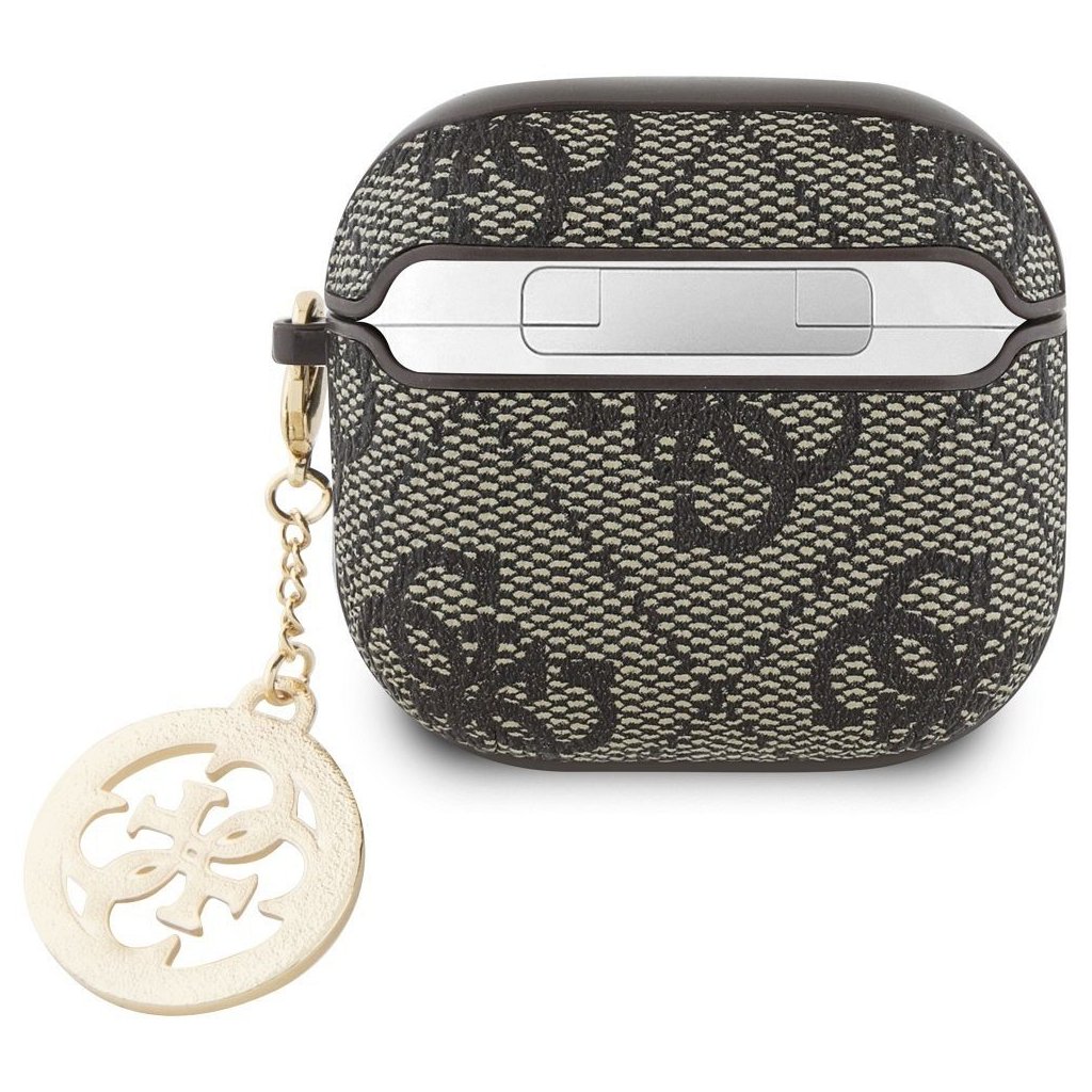 Pouzdro Guess 4G Strass Charm pro Apple AirPods 4 – hnědé (PU kůže)