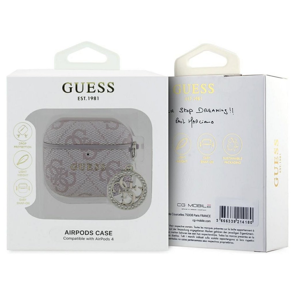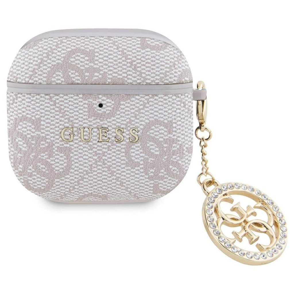 Pouzdro Guess 4G Strass Charm pro Apple AirPods 4 – růžové (PU kůže)