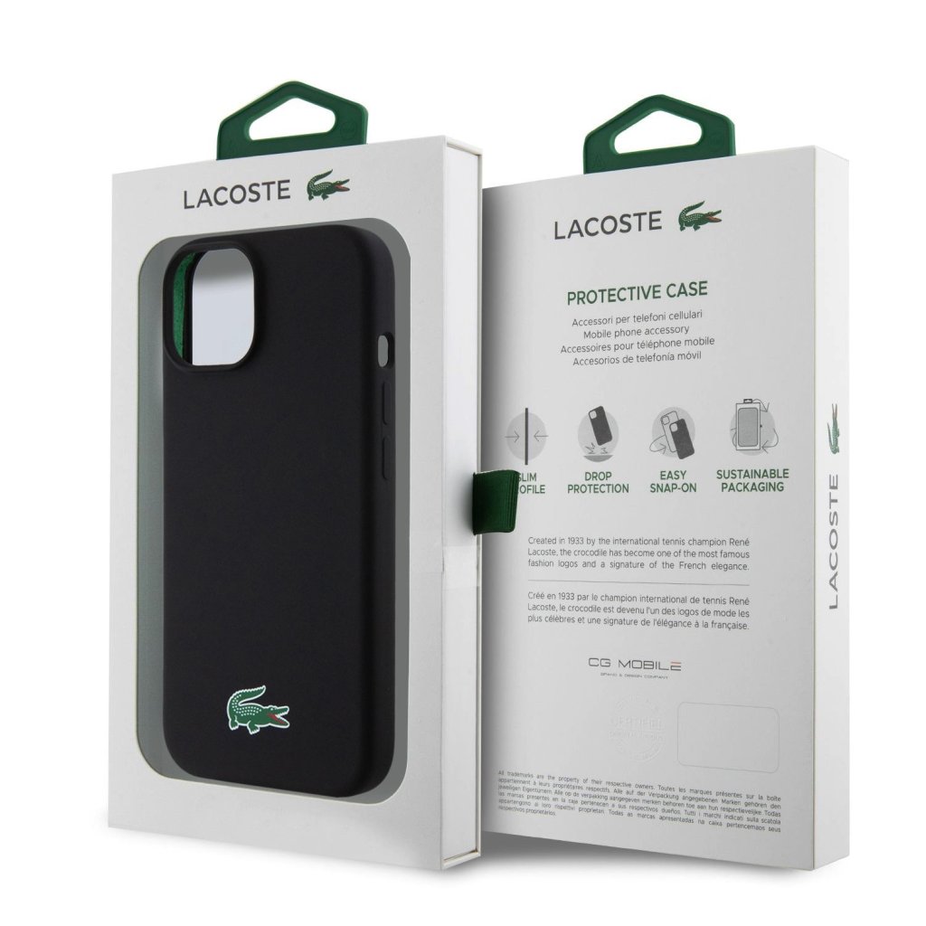 Lacoste Liquid Silicone Microfiber Croc Logo Magsafe Zadní Kryt pro iPhone 15 Black