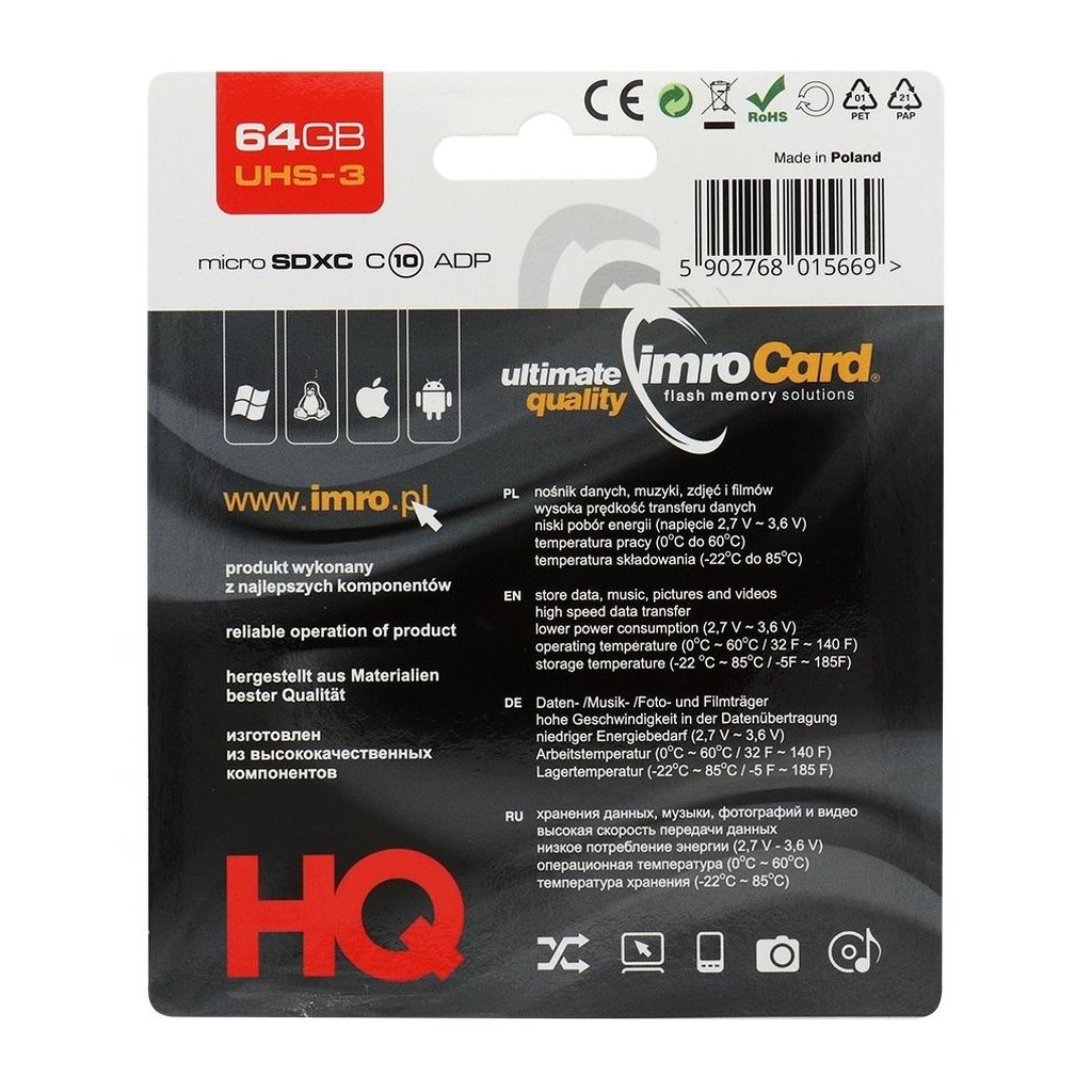 Paměťová karta IMRO microSD 64GB CLASS 10 UHS 3 100MB/s + adapter SD