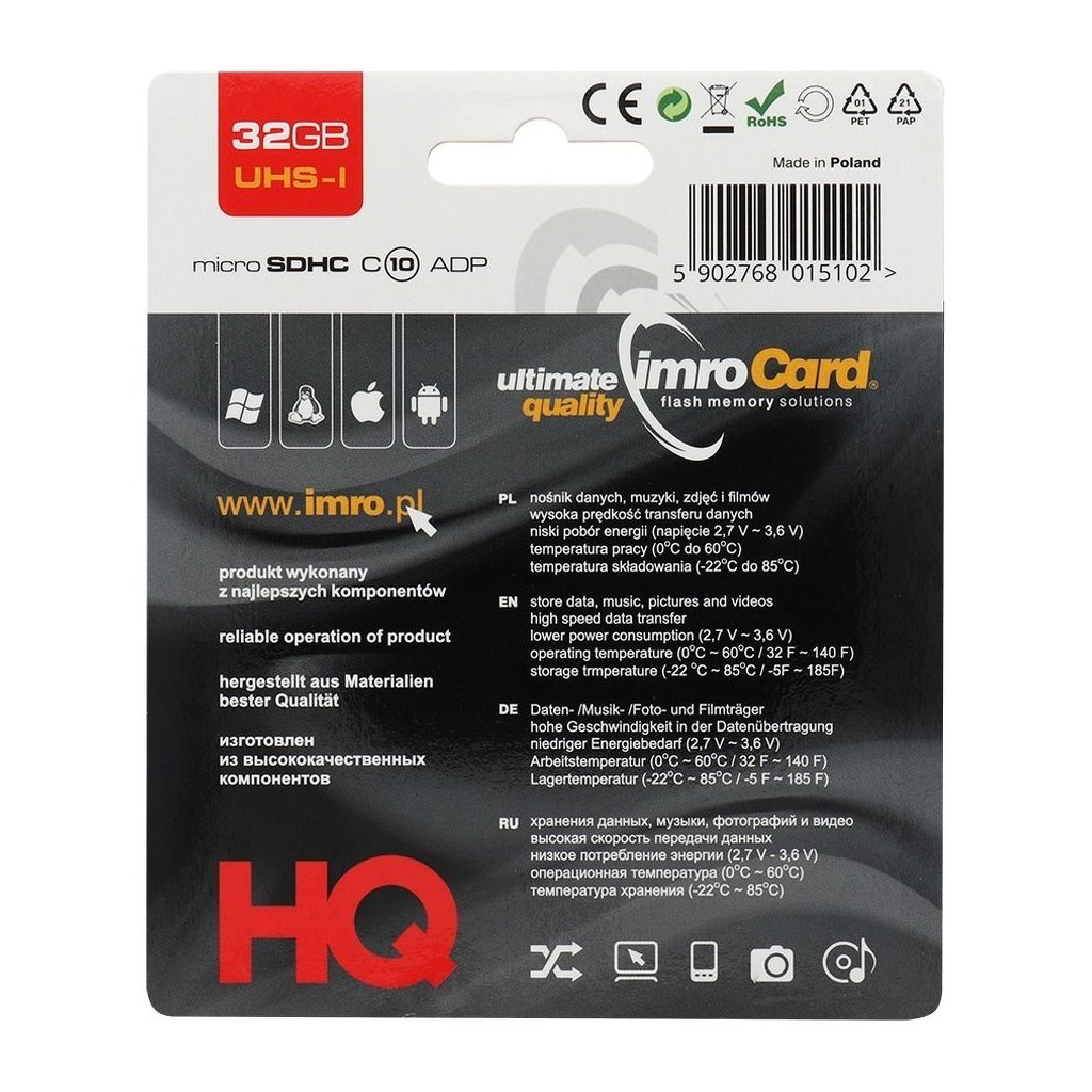 Paměťová karta IMRO microSDHC 32GB Class 10 + adaptér SD (Blister)