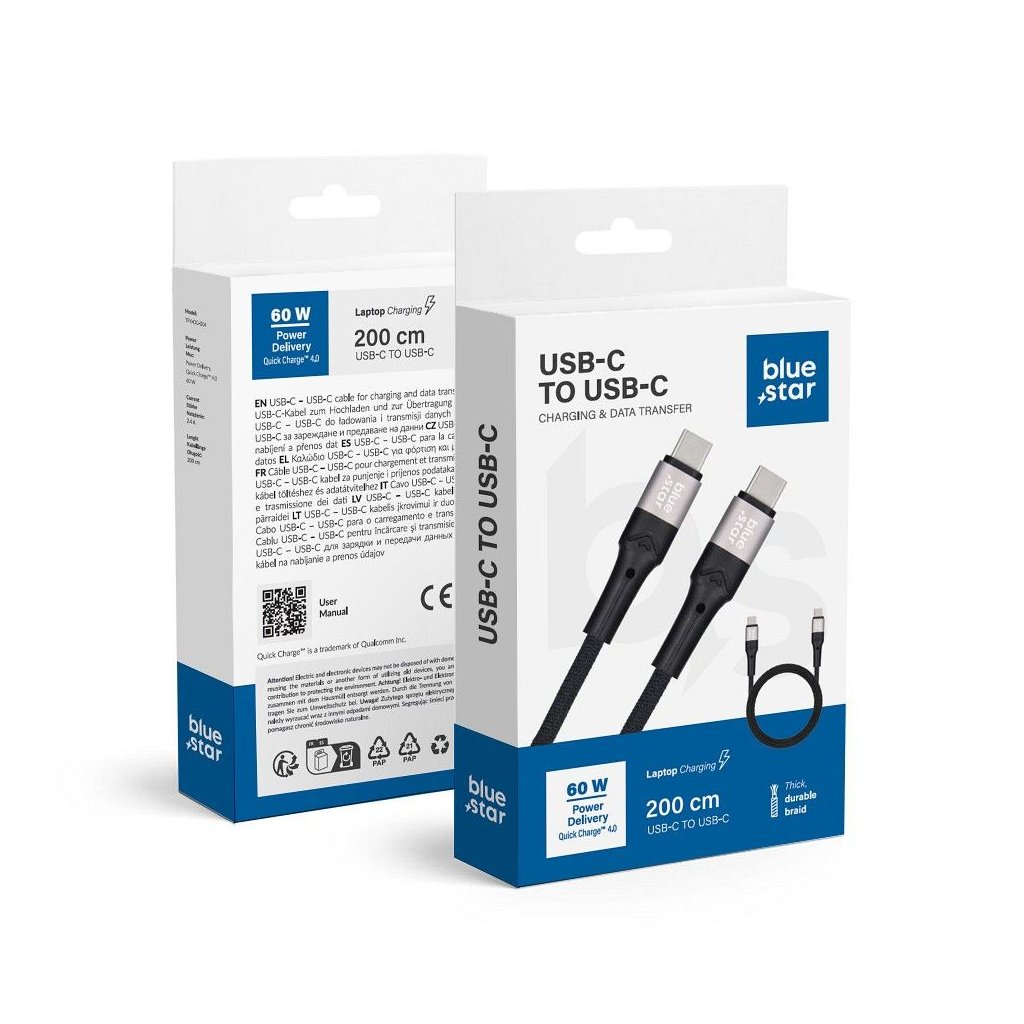 Pletený kabel Blue Star s konektorem USB C na USB C 3A 60W 2m