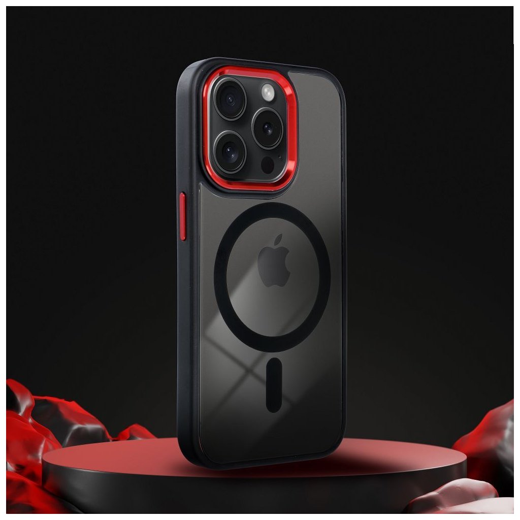 Pouzdro Color Edge Mag Cover MagSafe APPLE IPHONE 15 PLUS černo červené