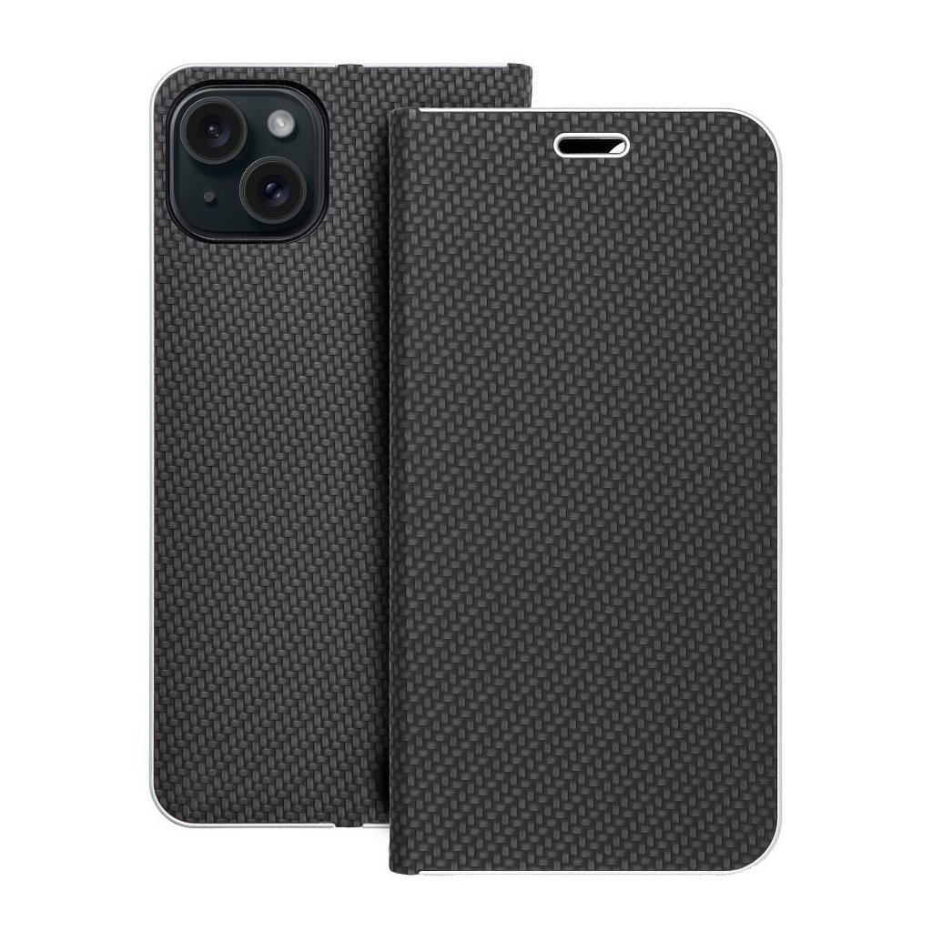 Pouzdro LUNA Book Carbon APPLE IPHONE 15 Plus černé