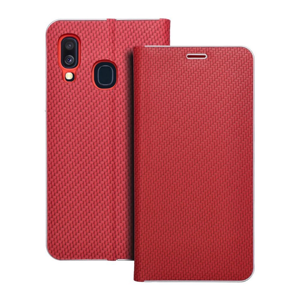 Pouzdro LUNA Book Carbon SAMSUNG Galaxy A40 červené