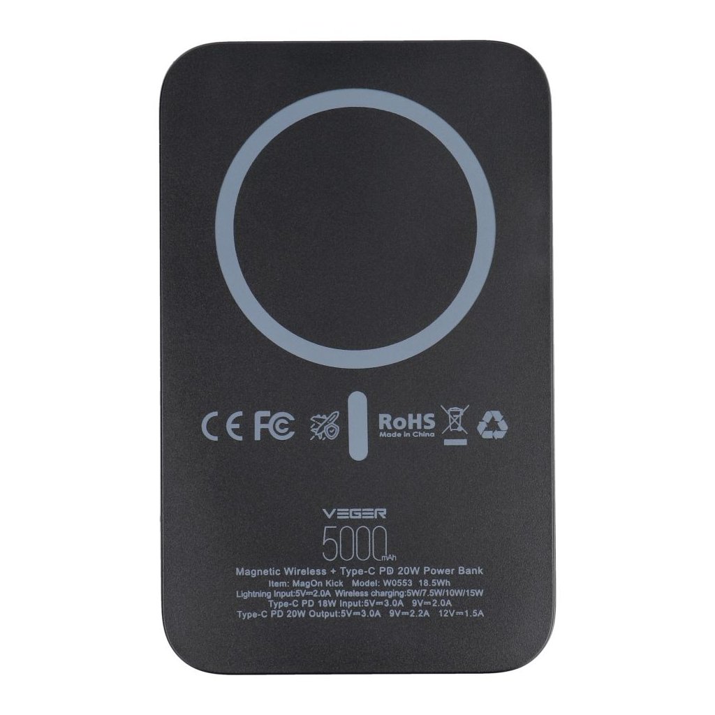 VEGER powerbank 5000 mAh s indukčním nabíjením kompatibilní s MagSafe PD QC3.0 2A 20W MagOn Kick (V0553P / W0553P) černá